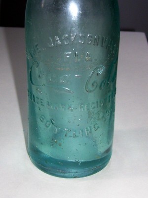 Title (ebay affiliate link): Antique Jacksonville, Florida COCA-COLA Aqua Glass Straight Side Bottle # ERROR