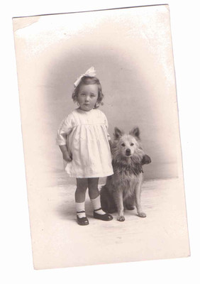 Title (ebay affiliate link): VINTAGE PHOTO CHILDREN BEAUTIFUL LITTLE GIRL FRILLY DRESS WITH DOG