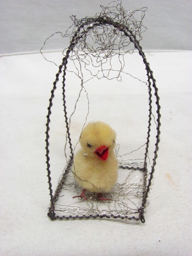 Title (ebay affiliate link): ANTIQUE GERMAN CHRISTMAS ORNAMENT CHICK IN CAGE TINSEL COTTON