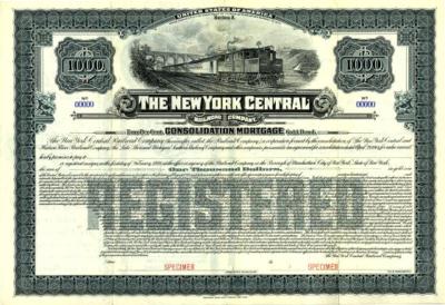 Title (ebay affiliate link): 1930's NY Central Railroad gold bond stock certificate Vanderbilt owned company