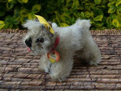 Cute old little Steiff Tessie Dog 1950s w all ID