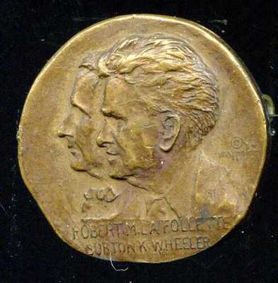 Title (ebay affiliate link): 1924 Robert LaFollette & Burton Wheeler Bronze Campaign Green Duck Co. Pin
