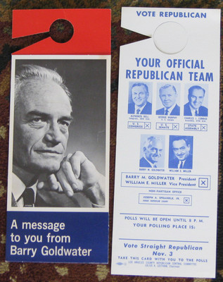 Title (ebay affiliate link): 1964 BARRY GOLDWATER CAMPAIGN PICTURE DOOR HANGERS INCLUDING CA MULTIGATE
