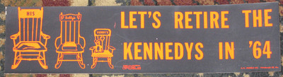 Title (ebay affiliate link): 1964 LET'S RETIRE THE KENNEDYS IN '64 CAMPAIGN BUMPERSTICKER - GOLDWATER