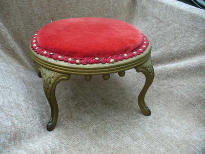 Title (ebay affiliate link): Antique Victorian Metal & Wood Red Velvet Footstool