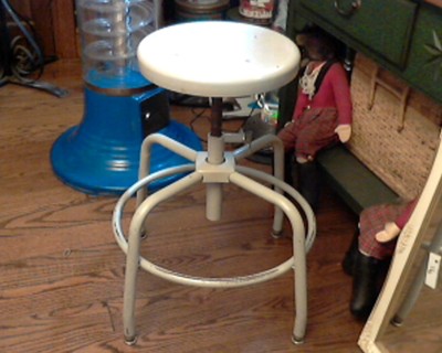 Title (ebay affiliate link): VTG ADJ 20"- 27"H GRAY METAL INDUSTRIAL DRAFTING STOOL-13" SEAT-19" BASE- NICE