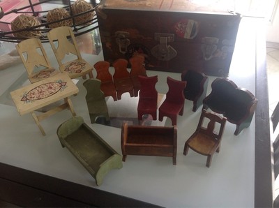 Title (ebay affiliate link): Vintage Antique Wood Doll House Furniture Samples Miniatures Excelsior Clasp