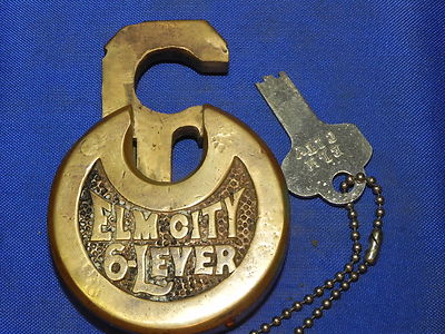 Title (ebay affiliate link): Antique Brass Elm City 6-Lever Padlock-Lock-Has Key #4
