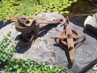 Title (ebay affiliate link): vtg antique cast iron farm industrial machine age hay pulleys