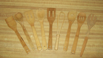 Title (ebay affiliate link): Lot of 9 Primitive Wood Wooden Kitchen Spoons / Spatulas / Whip