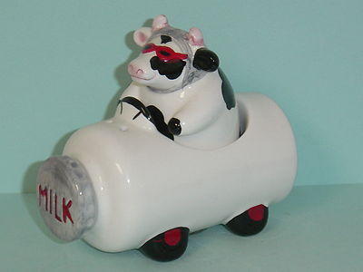 Clay Art Cow in Milk Race Car Salt & Pepper Shakers