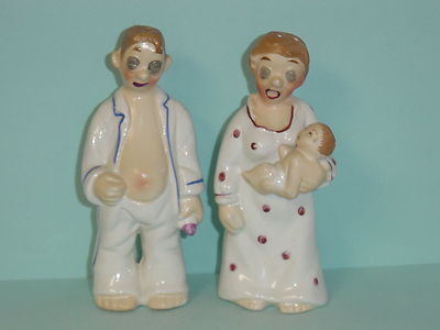 Exhausted New Parents with Baby Salt & Pepper Shakers