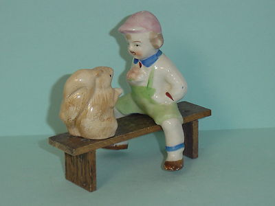 Boy Sitting on Wooden Bench Feeding Squirrel Salt & Pepper Shakers