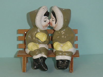 Title (ebay affiliate link): Kissing Eskimo / Inuit Couple Sitting on Bench Sitters Salt & Pepper Shakers