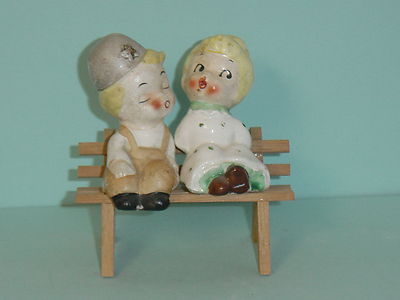 Boy & Girl Sitting on Bench Sitters Salt & Pepper Shakers