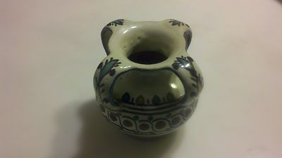 Small Four-Handled Ceramic Vase Hand Painted Antique