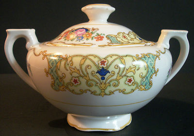 Title (ebay affiliate link): Vintage~Sugar Bowl~China~Green Yellow Scroll Floral~1933's~Keystone~Canonsburg