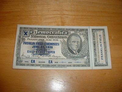 Title (ebay affiliate link): 1936 DEMOCRATIC NATIONAL CONVENTION TICKET JUNE 27 WITH ADMISSION COUPON