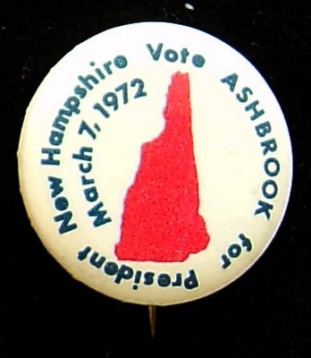 Title (ebay affiliate link): 1972 John Ashebrook New Hampshire Primary Campaign Celluloid Pinback