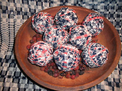 Title (ebay affiliate link): 8 PRIMITIVE ANTIQUE COVERLET RAG BALLS NAVY*RED*CREAM/BOWL FILLERS