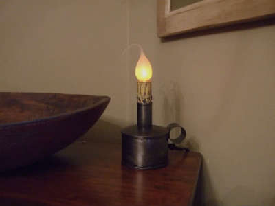 Title (ebay affiliate link): Primitive Colonial Tinder Box Lamp With Silicone Flicker Flame Bulb