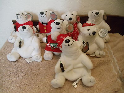 Title (ebay affiliate link): Lot of 8 ~Collectible ~*~Coca Cola~*~ Plush Polar Bears