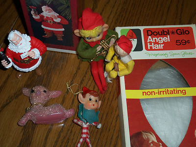 Title (ebay affiliate link): Lot of Vintage Christmas Elves, Deer, Angle Hair, Hallmark Coca-Cola Santa, NICE