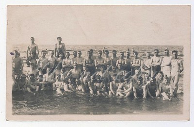 Title (ebay affiliate link): Group of Men in bathing suits at the Beach - Original Antique Photo