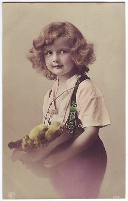 Title (ebay affiliate link): Cute GIRL CHILD w Baby Chicks 1910s Tinted Photo Postcard