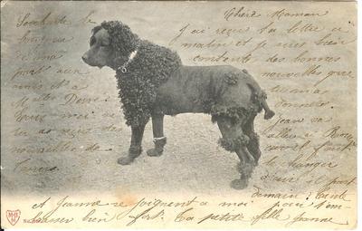 Title (ebay affiliate link): CLIPPED POODLE or Portuguese water dog old photo postcard