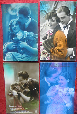4 x 1920s DECO Romantic Couples French Paris Studio photo Post Cards