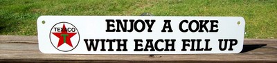 TEXACO COKE Coca Cola Metal Gas Station Sign Garage Pump Sinclair Gulf Oil Esso