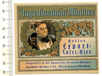 German beer label - AUGUSTINERBRAU MUNCHEN, HELLES EXPORT TAFEL BIER