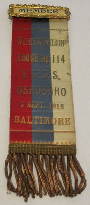Woodrow Wilson - Baltimore Lodge Ribbon 1918