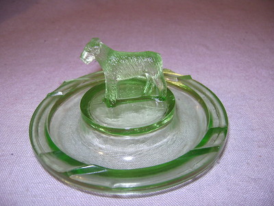Title (ebay affiliate link): Cute Green Depression Glass Terrier Ashtray Trinket Dish Dog Airdale