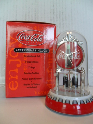 Title (ebay affiliate link): Miniature Bottle Coca Cola Anniversary Clock: Mint in Orginal Box,Never Used