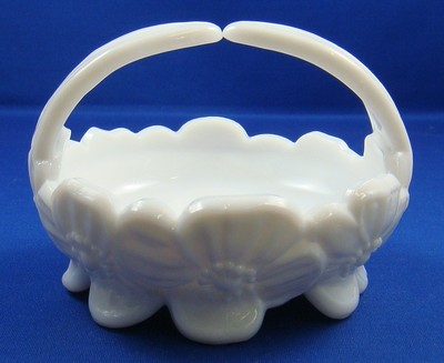 Title (ebay affiliate link): Westmoreland Split Handle Dogwood Darling White Milk Glass Basket