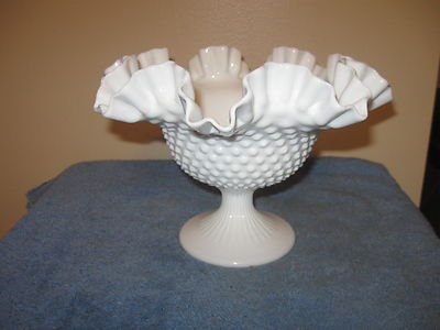 FENTON MILK GLASS HOBNAIL RUFFLED COMPOTE BOWL