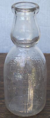Chestnut Farms Dairy One Quart Glass Milk Bottle Early American Dairy Jar