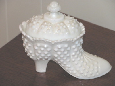 White Milk Glass Hobnail Shoe/Lid Candy/Dish