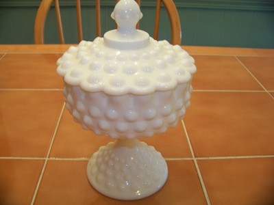Fenton Milk Glass Candy Dish with Lid Hobnail