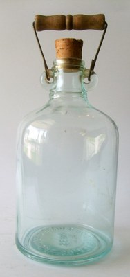 Title (ebay affiliate link): Old FIGARO CHEMICAL Co. Glass Bottle Jug Jar Bail Handle with Wood Grip