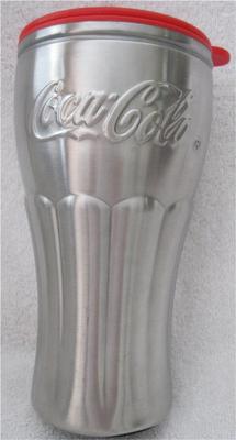 Title (ebay affiliate link): Coca-Cola Travel Mug - Brushed Aluminum Classic Coke Bottle Shape w Sipper Top