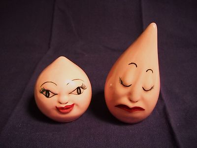Title (ebay affiliate link): PINK TEARDROP SALT & PEPPER SHAKERS VINTAGE "SAD/HAPPY FACE"