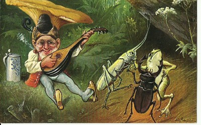 Title (ebay affiliate link): 4976 ART SIGNED SCHONIAN GNOME FUNGUS FUNGI MUSHROOMS SETAS INSECT FROG POSTCARD