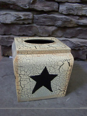 Title (ebay affiliate link): Primitive Americana Rustic Metal Crackled Tissue Holder Black Star Country Decor