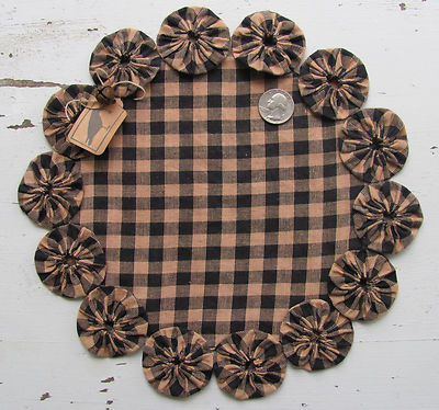 Title (ebay affiliate link): Tea Stained Cotton Homespun Fabric Crow Rusty Bell Yo Yo Mat Doily Bowl Filler