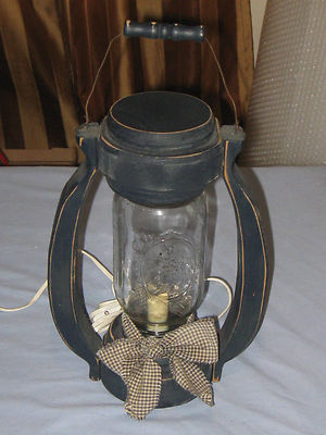 Title (ebay affiliate link): PRIMITIVE COUNTRY STYLE DECOR WOODEN BLUE LANTERN LIGHT