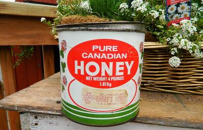Title (ebay affiliate link): Vintage Pure Canadian Honey Tin Great Graphics All Original