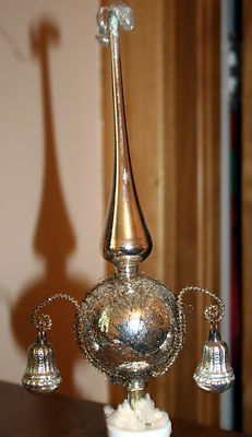 Title (ebay affiliate link): Early Wire Wrapped Tree Topper, Silver Tinsel, Glass Ornaments. Orginal Box